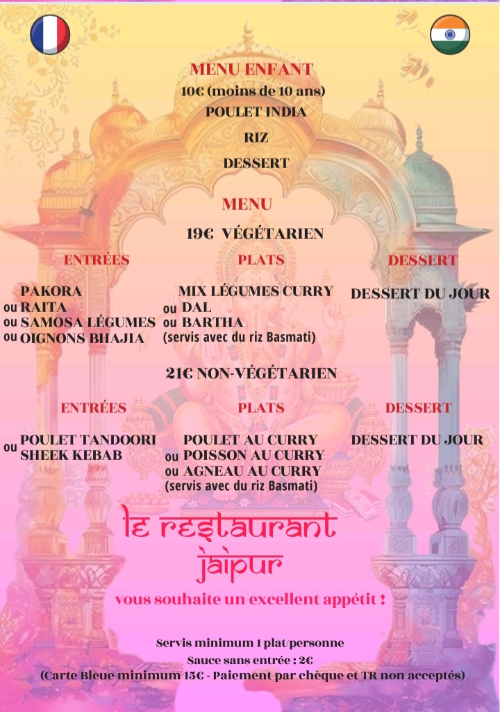 Embrace the warm ambiance and hospitality of JAIPUR, located in MONTPELLIER. A heartfelt welcomes you! Be prepared to be captivated by our delicious selection of indian cuisine. Tasty dishes are prepared by the best chefs here. Our delicious food are waiting to be tried by you. Here you could treat yourself to our delectable desserts. At our establishment, we cater to your individual dietary preferences by providing a range of gluten free, lactose free, vegan, and vegetarian options. Refreshing beverages are also available for you to enjoy. Our helpful servers are waiting to delight you with tasty lunch and dinner. As well as serving food, we provide nice music.